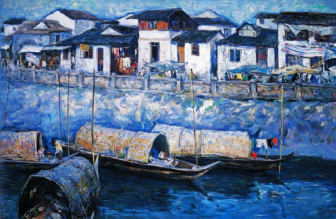 陈天龙 运河旁的市集(温州)