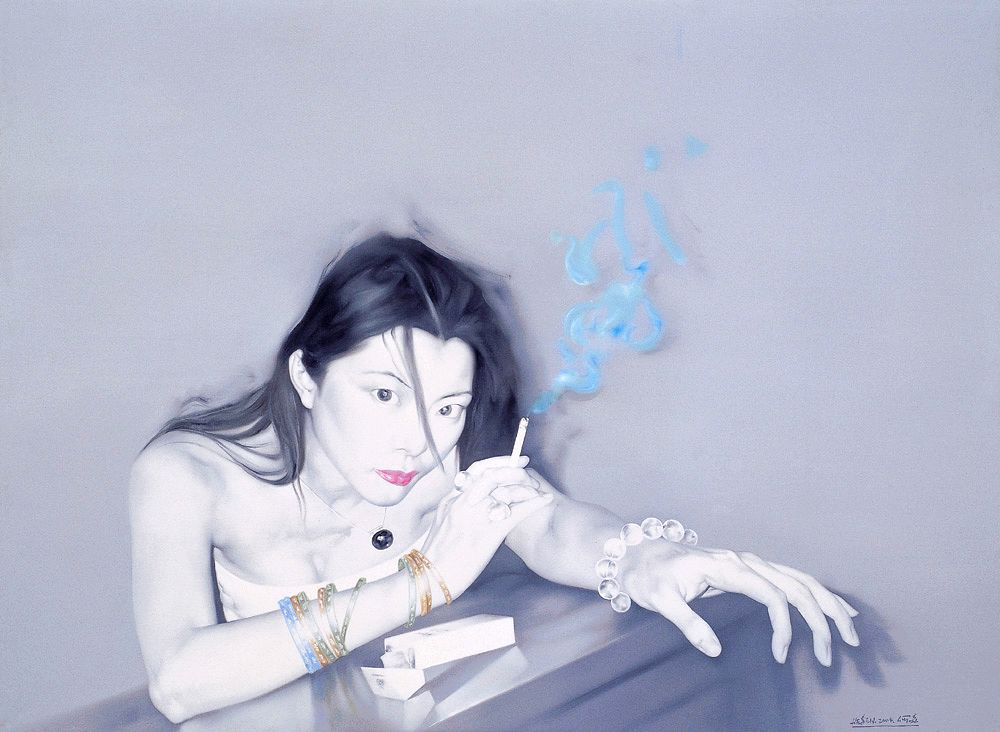 何森 2004年作 烟雾与绣片