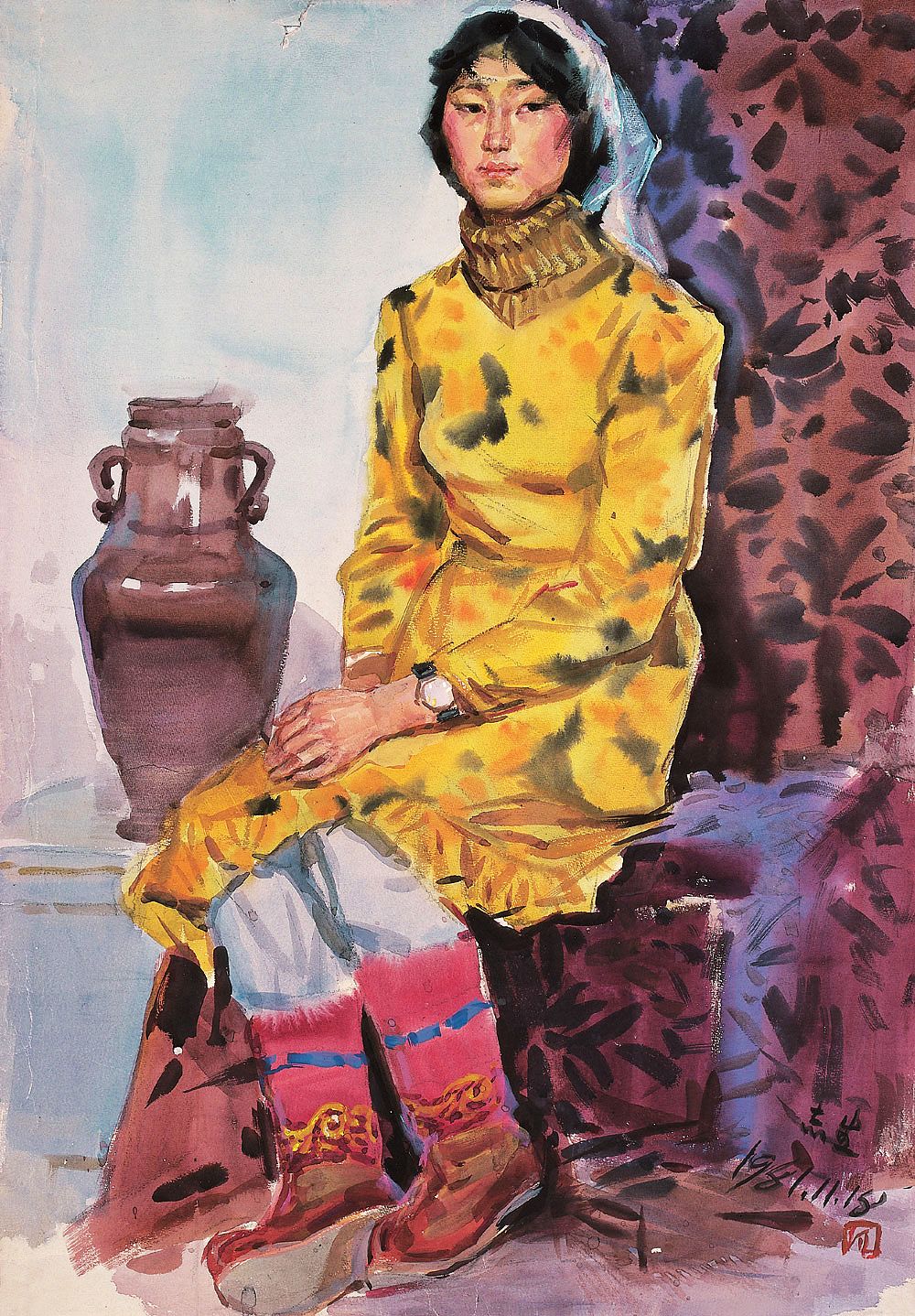 胡善余 1982年 红衣少女