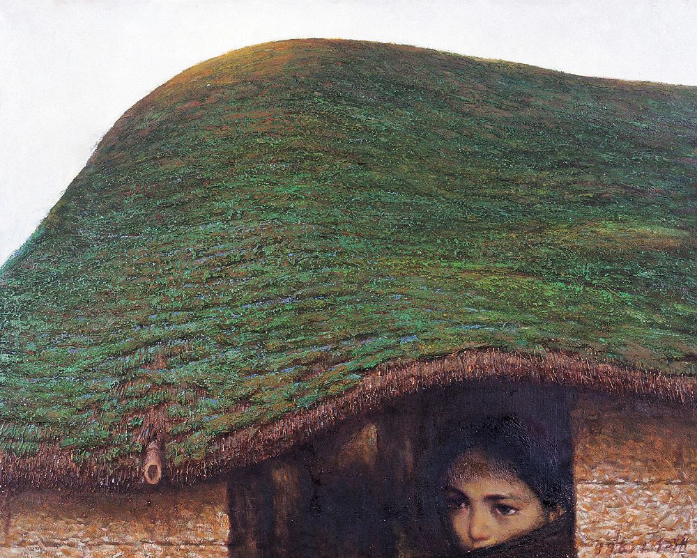 胡仁樵 1987年作 长满青苔的老屋