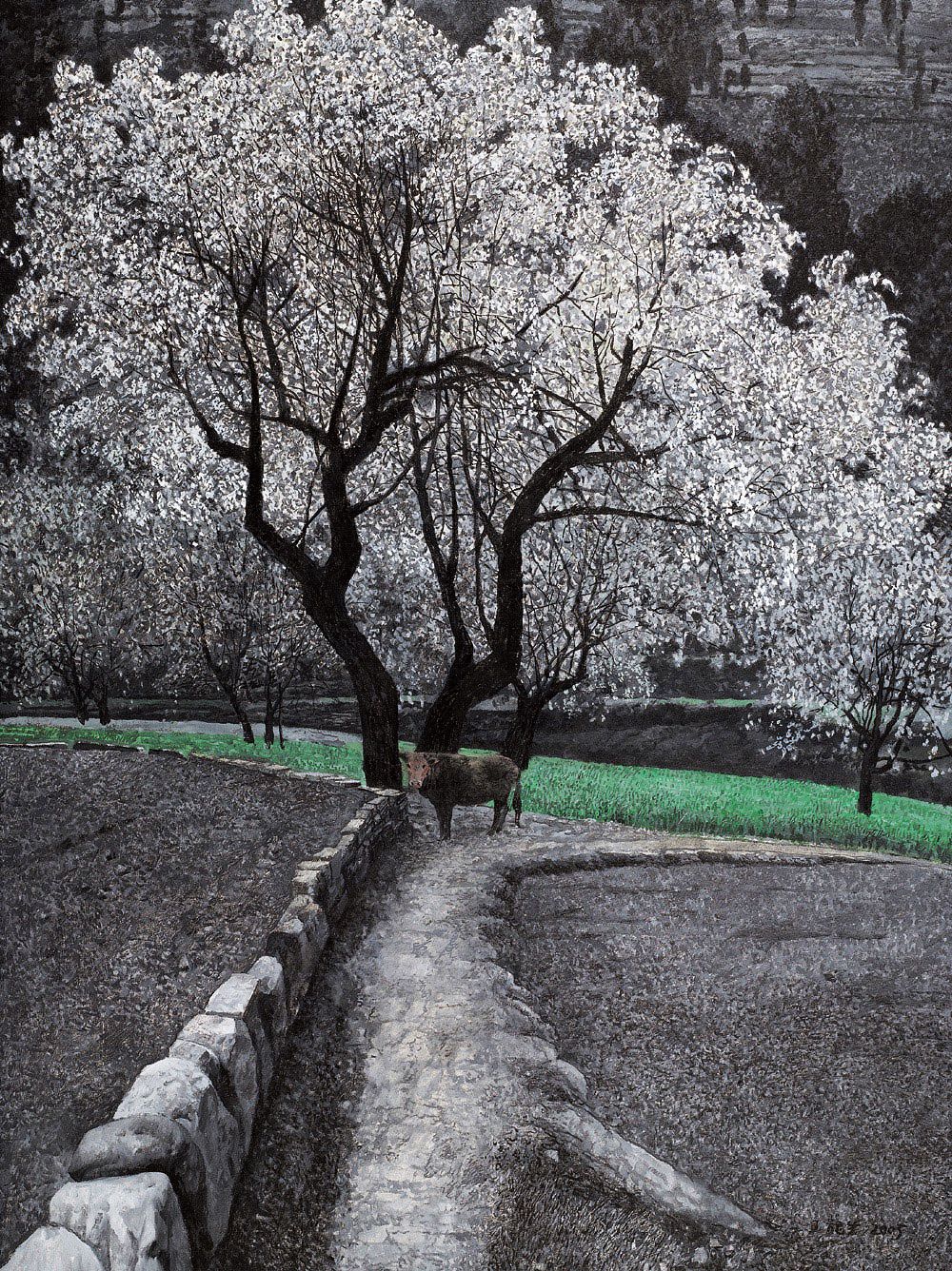 王龙生 2004年作 冬水田旁的小梨树