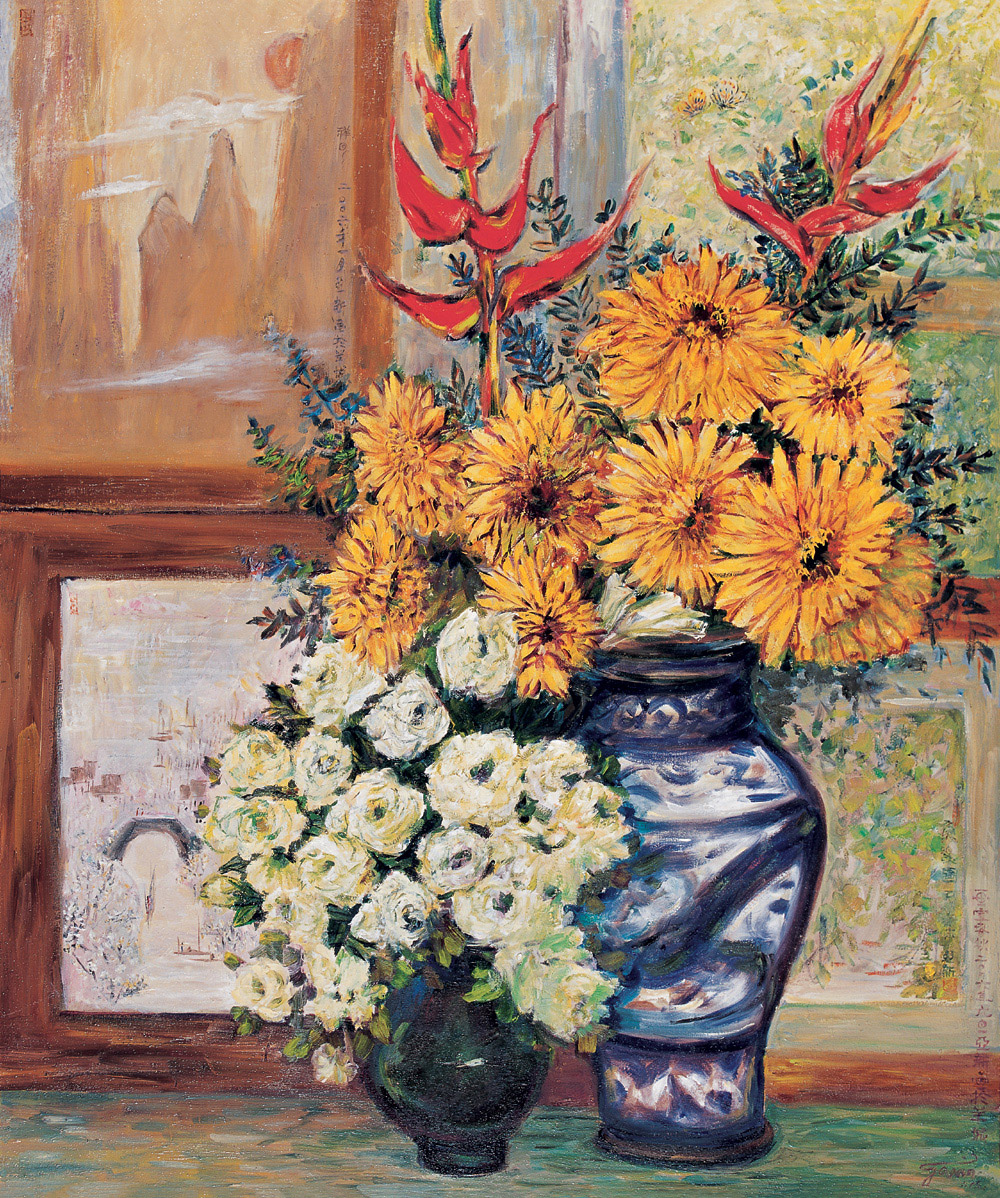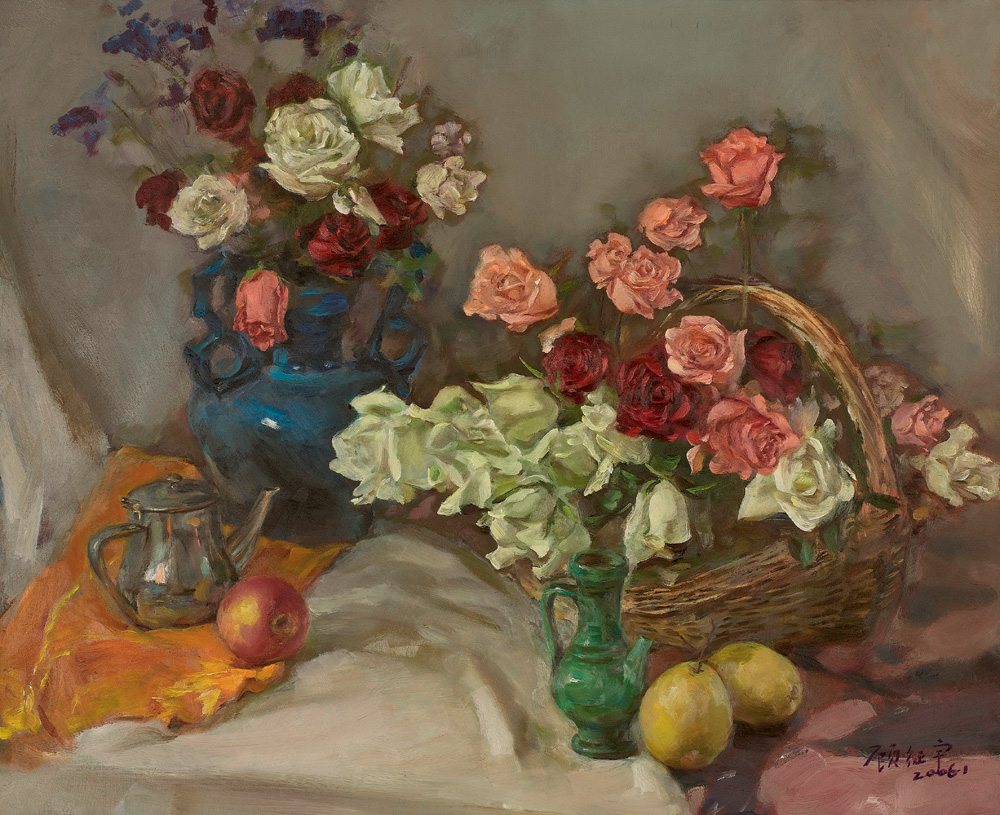 岳敏君 2003年作 《浪漫主义+现实主义-6》