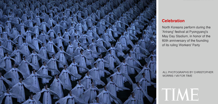为了庆祝朝鲜劳动党建党60周年,在平壤的五一体育场内演出的大型歌舞”阿里郎”