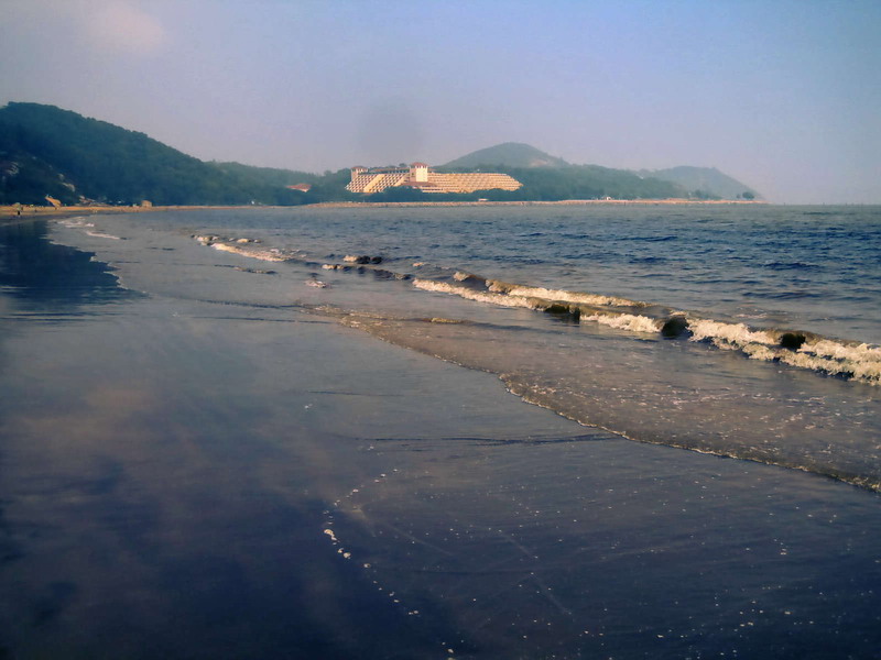 这可不是污染,据说是国内唯一的黑石英的沙滩,别有风格