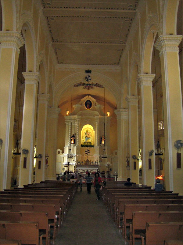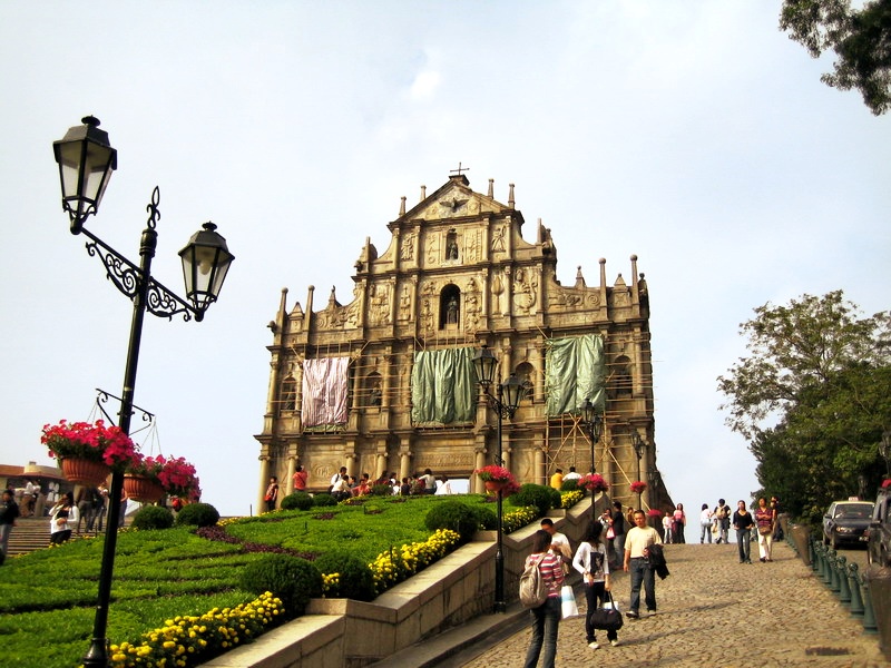 大三巴原来是座教堂,后被大火烧得只剩座前墙。