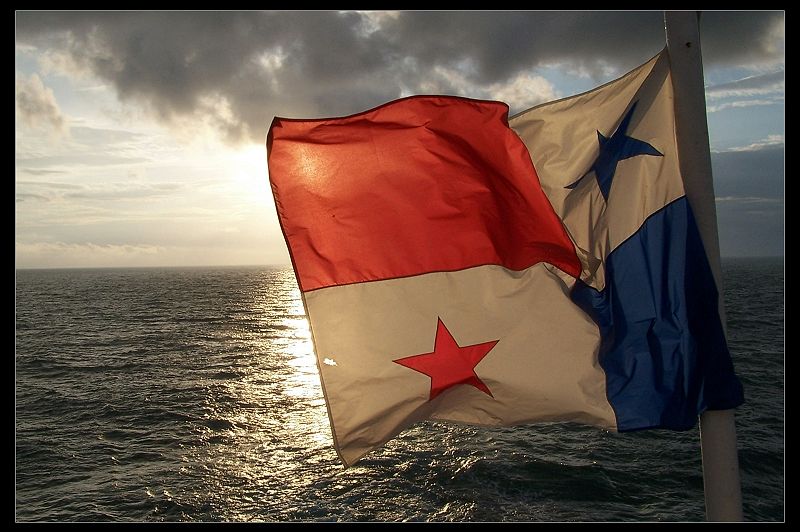 2# 所乘的邮轮,注册地是巴拿马,这面旗帜不知是不是巴国的国旗.
