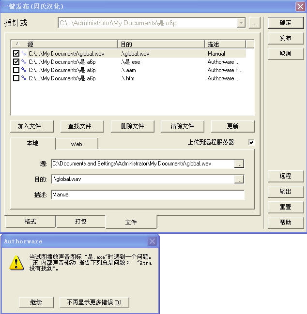 我在使用Macromedia Authorware 6.5时,最后在发布的时候声音却出现错误
