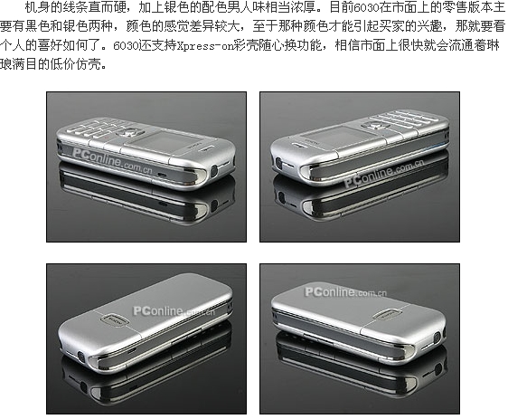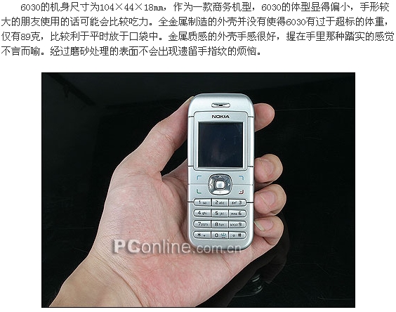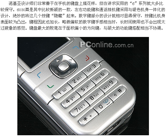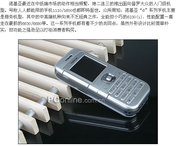 2005年底,在推出6681以及6230i两款分别针对高、中端市场的新款商务手机后,诺基亚开始在低端发力,陆续推出了6020、6021等价格不足两千元的中低端商务机型。低端机型可以说是诺基亚销售业绩的顶梁柱,因此在主要竞争对手摩托罗拉陆续推出超低端手机之后,诺基亚也要尽全力维持这方面的优势。最近才上市的6030就是诺基亚面向低端用户所推出的又一款实用商务机型,具备FM收音功能的它早在3月1号就已经官方发布,6030在进入评测室之后我们第一时间对其进行了紧张的试用,下面请看详尽的评测报告。