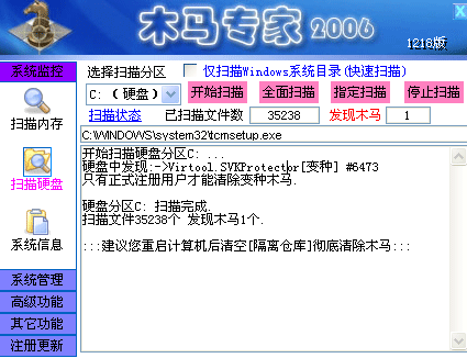 O4 - HKLM\..\Run: [木马专家] C:\Program Files\Trojan Expert 2006\mmzj.exe