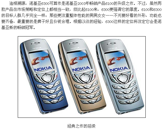 一直以来,诺基亚并没有太过于专注向潮流手机方向发展,尤其是这股刮遍业界的超薄风,对诺基亚的影响甚微。在许多厂商为了追求更薄的机身而牺牲一部分手机功能之时,诺基亚多年以来的经验却让他们坚信——这种做法是没有必要的。相比其外观上的“至薄”来说,它们更强调产品在各方面的平衡:无论是设计、硬件还是软件的配备。作为诺基亚6系列的新一代产品,6300与这个系列的其他直板手机一样,将焦点放在提升产品的性价比上。