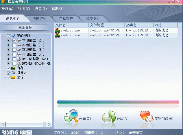 查看完整版本: svchost.exe病毒被瑞星杀不掉,哪位帮我下