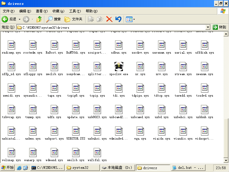 强人,佩服,“之前我在drivers目录下写了个文件,防止熊猫病毒文件的写入”网上看来的吧?之前是个放个文件防威金的……