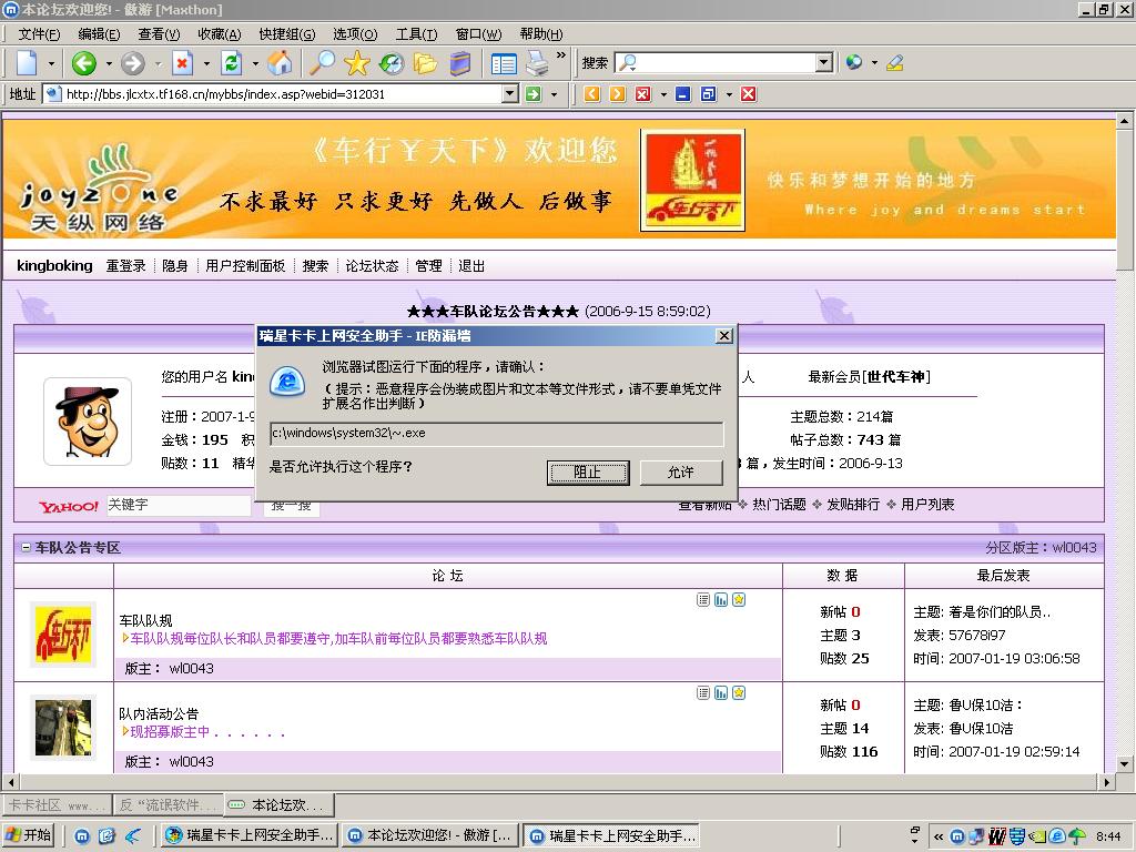 http://bbs.jlcxtx.tf168.cn/mybbs/index.asp?webid=312031时,卡卡都会提示(如图)。
