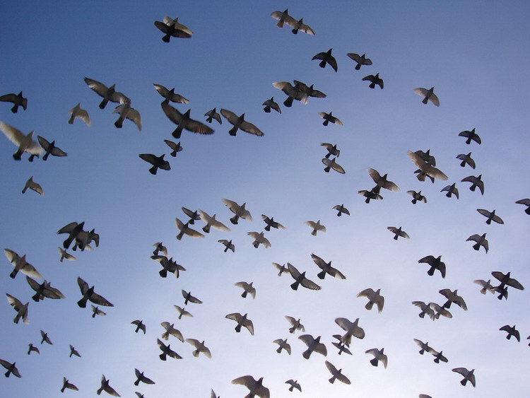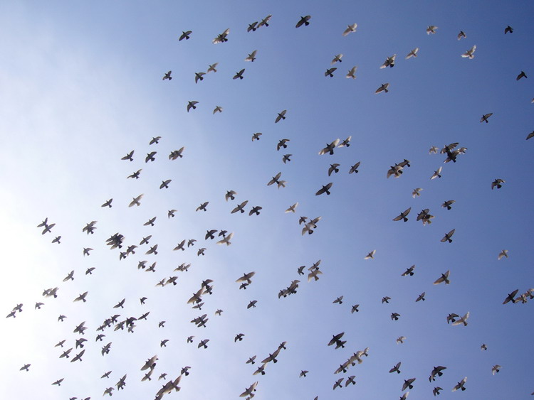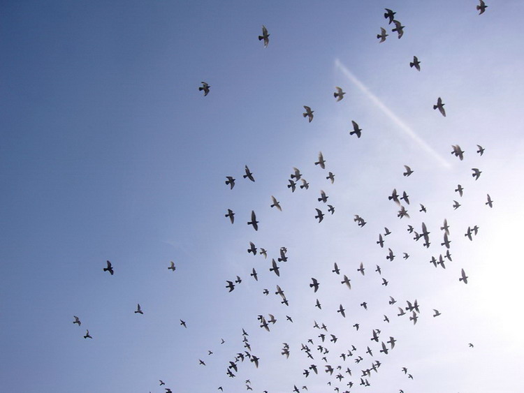 幸福的鸽子--如此自由地翱翔在蓝天里!