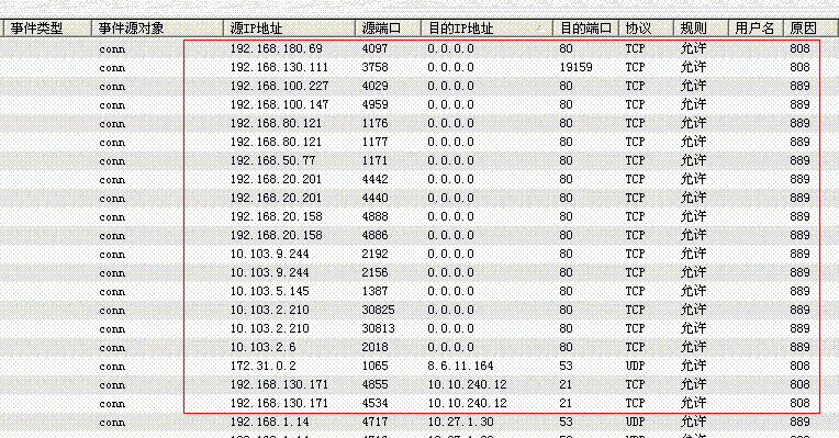 防火墙日志中出现大量目的IP地址0.0.0.0的数据包,请问是什么问题