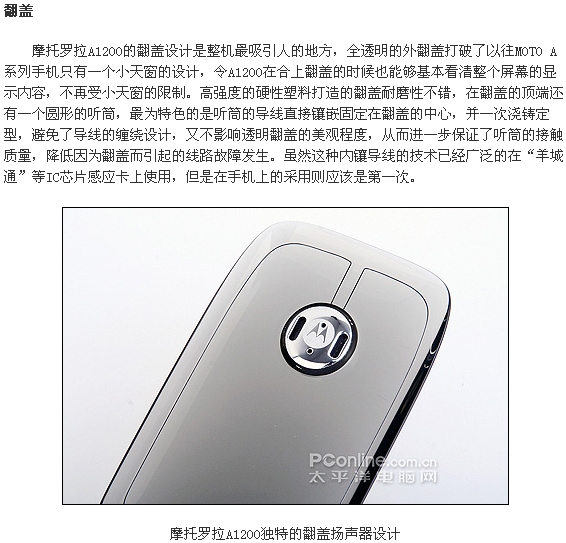 在有超过半年没有推出Liunx系统新手机的摩托罗拉,在去年年底震撼发布了旗下最新的Linux旗舰A1200,并于今年初正式上市。全透明的翻盖设计,精美的外观已倾倒不少Linux手机的FANS,受欢迎程度非同一般。从命名方式的A系列来看,A1200是一款定位于高端商务用户的手机,在这款手机即将全面在国内上市的时候,我们太平洋手机频道收到了A1200的工程样机,为大家送上最为详尽深入的测试报告。