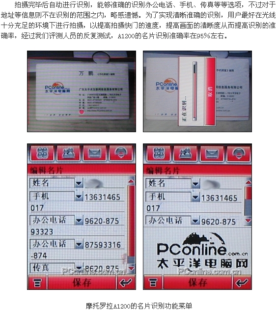 ·200万像素摄像头:MOTO G网手机中首次出现,并具备OCR名片识别功能