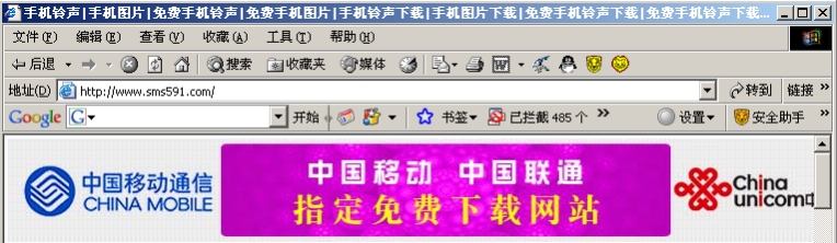 最近这两天,一个名为中国移动的指定铃声下载的网站:“http://www.sms591.com/”老是不停的跳出来。用杀毒软件查不出来,用恶意软件清理助手及瑞星卡卡都没有把它干掉,而且没有任何报告。