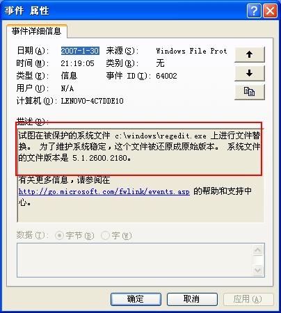 【阿诺8979的贴子】regedit是受保护的系统文件,改名删除都会重新出现一个新的,你可以先删除C:\WINDOWS\system32\dllcache的备份文件,然后再改名试试。删除C:\WINDOWS\system32\dllcache\regedit.exe就可以删除和改名WINDOWS下regedit.exe了,会有系统保护的提示。 ……………… |