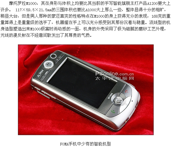 这款命名为FOMA M1000的智能手机是由日本国内的移动运营商NTT DoCoMo公司贴牌的,大家从手机的外观上就可以明显的看出来,M1000与之前在香港地区正是上市的摩托罗拉A1000有着千丝万缕的联系,然而这两款外观较为一致的产品,两者的区别在什么地方呢?下面便为大家送上其试用报告。