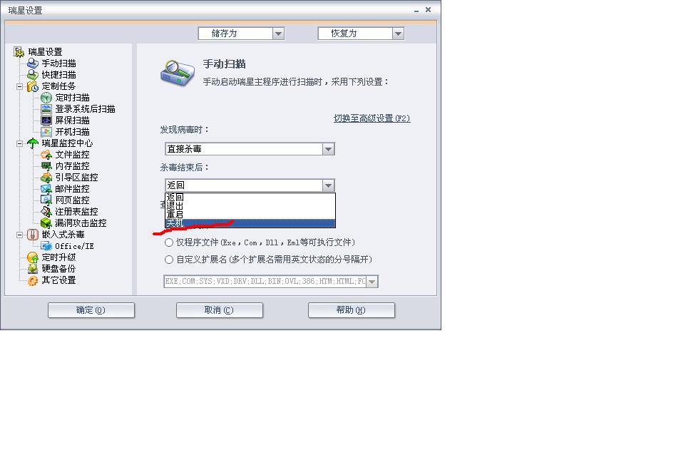 瑞星要能杀毒后自动关机就好了