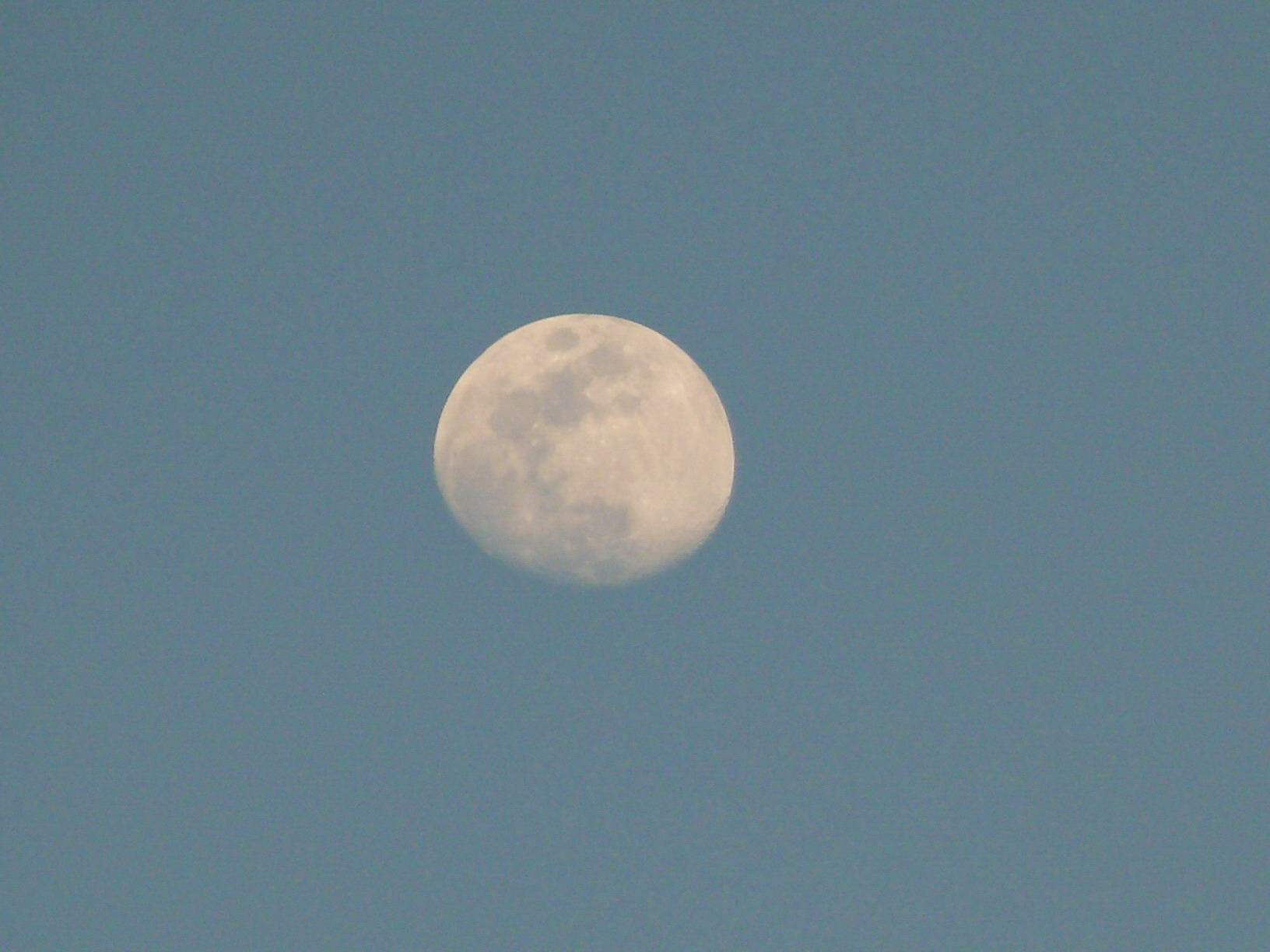 这几天天气好,傍晚的落日红得让人心悸.只可惜没有云彩.回过头来,天上还有月亮.日月同辉吧.
