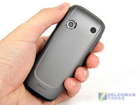设计在多普达310(资料 文章 价格 评论)机身顶端的东东并不是按键,它实际上是拆卸后盖的机关,而该机的底部则是集中了标准mini USB接口和挂绳栓。翻过来再看310的背面,只有一颗130万像素的摄头孤零零地守候在这里。由于多普达310是一款讲究“性价比”的手机,因此没有闪光灯和自拍镜,也不是200万像素也在情理之中。