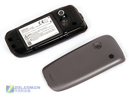 摘下后盖我们就能够在摄头一旁看到多普达310的扬声器,这也就是为什么在后盖的模具上,摄头旁边还有一道缝隙,并且由一层网格状介质进行防尘处理。而该机的第三方mini SD存储卡插槽依旧被安排在了电池的下方,这同时也非常遗憾地意味着我们无法在多普达310上进行不关机的热插拔操作。