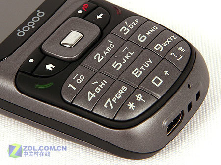 多普达310拥有一块造型夸张的键盘。之所以形容它们夸张,最主要的原因就在于18个按键没有一个是整齐的长方形,不是边角经过了弧度的处理,就是两侧呈斜线的梯形状。不过由于每个按键的接触面积都非常宽大,键面也都经过了磨砂的处理,因此多普达310的易用性还是非常高的。