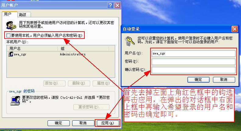 【zihe的贴子】每次开机的过程中都要输入用户名,很麻烦,注销后再启动还是如此,请问怎样才能反这一步聚去掉? ……………… |