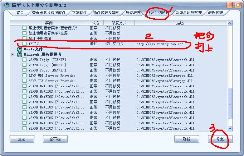360卫士,超级兔子,卡卡助手,优化大师,~种种都能修复啊!!