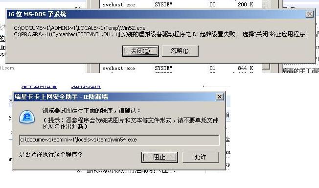 最近我的机子突然出现如附件图片中所示的问题,间隔二十秒就会弹出,并且伴随主机间隔的滴滴声,很是影响工作!瑞星查杀无异常,搜索网络没有找到解决方案,于是求助于瑞星的技术支持,在三个工作日里没有得到解决方案(第二个工作日里收到一封帮助提示邮件,我已按要求回复).但是在第一工作日里,360论坛上已出现非官方的解决方案(但我试了没效果),在第二个工作日里,我卸掉卡卡装上360升级后查杀出两个木马病毒,问题解决!