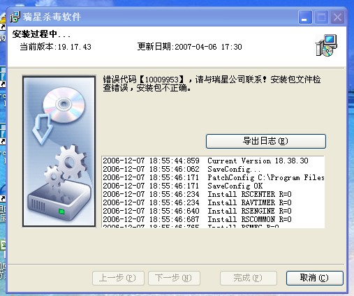 软件在升级失败后,重新启动电脑,发现杀毒软件无法使用,点击升级,系统显示修复软件。在程序中点击“添加删除组件”没有修复和卸载,只有安装模式。按照提示点击下去,却出现“错误代码10009953,安装包检查错误”。按照官方网站服务中心解决10009953的方案,也没有任何效果,现在软件无法使用、无法卸载(修复)、无法再次安装新软件。
