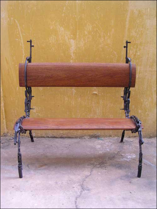这把椅子很容易看出是由步枪改造的,椅子的支撑部分都是由步枪的枪管组成。