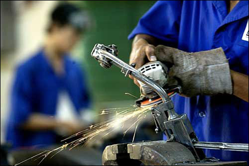 这是艺术家们在改造机枪使其成为一件艺术品的生产过程。