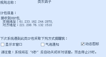 我电脑好象中了灰鸽子,现在大家帮帮忙啊。看看我的防火墙检测到的,没办法弄啊。大家忙帮忙~