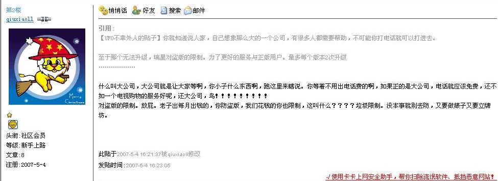 在反病毒论坛有侮辱性语言,禁言3天,不扣除经验。