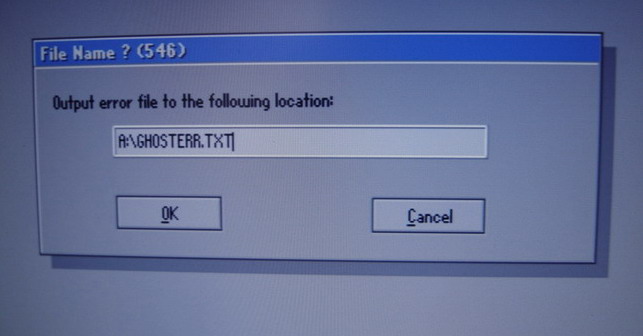 就是说实际上引起错误的并不是GHOSTERR.TXT这个文件,而是你本身的安装盘有错误或是硬盘有错误(如:有坏扇)才有这个提示的。