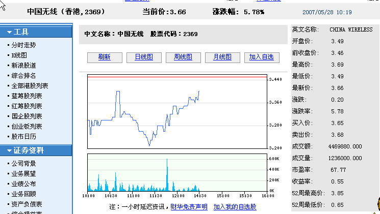 另一支就是中国无线,股票代码:2369,这支股票最近一直表现不错,成交量及成交额都比较高,而且主要是最近该公司动作比较大。在大陆,其旗下产品宇龙酷派手机占据高端智能双待手机市场份额的半壁江山,且还在不断加大,最近又推出CoolPAD 8260,这款机子是智能G网双待机,同时是多CPU,很有市场竞争力,它的面世结合该股的近期自身表现,可能会带动该股一定幅度的提升。