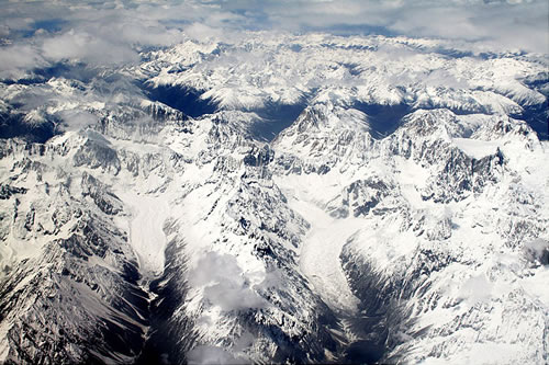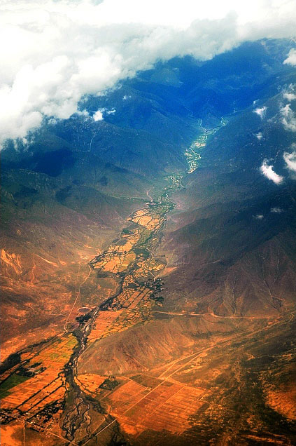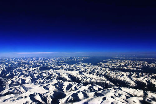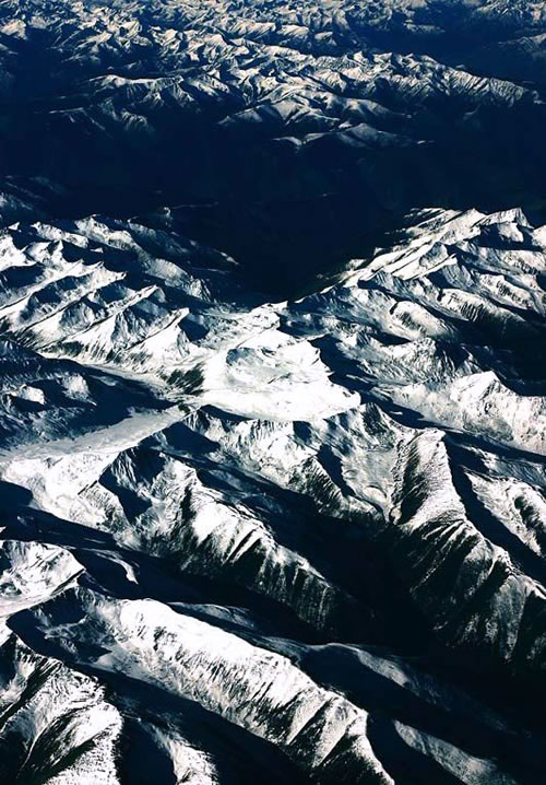 西藏屹立在地球之巅,俯瞰青藏高原,云隙中可见峰岭相连,苍山如海,嵯峨顶际雪光晶莹,江河细如丝线,连缀在山谷深邃的阴影中。那是一片山的海洋,构成其骨架的是喜马拉雅山、冈底斯山、念青唐古拉山、唐古拉山、昆仑山等等。