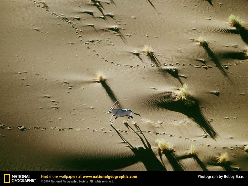剑羚生长在非洲东部到西南部的干旱地区。这是一群在纳米比亚纳米布沙漠上奔跑的剑羚。纳米布沙漠被认为是世界上最古老的沙漠,这里的沙丘高达305米。