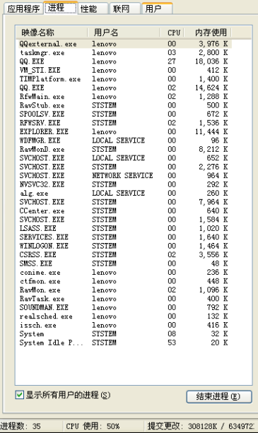 清高手给看看进程 CPU使用50% 经瑞星查无病毒 现在速度特慢