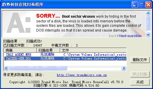 这是我用趋势科技扫描找到的病毒,请问哪里有专杀工具下载?