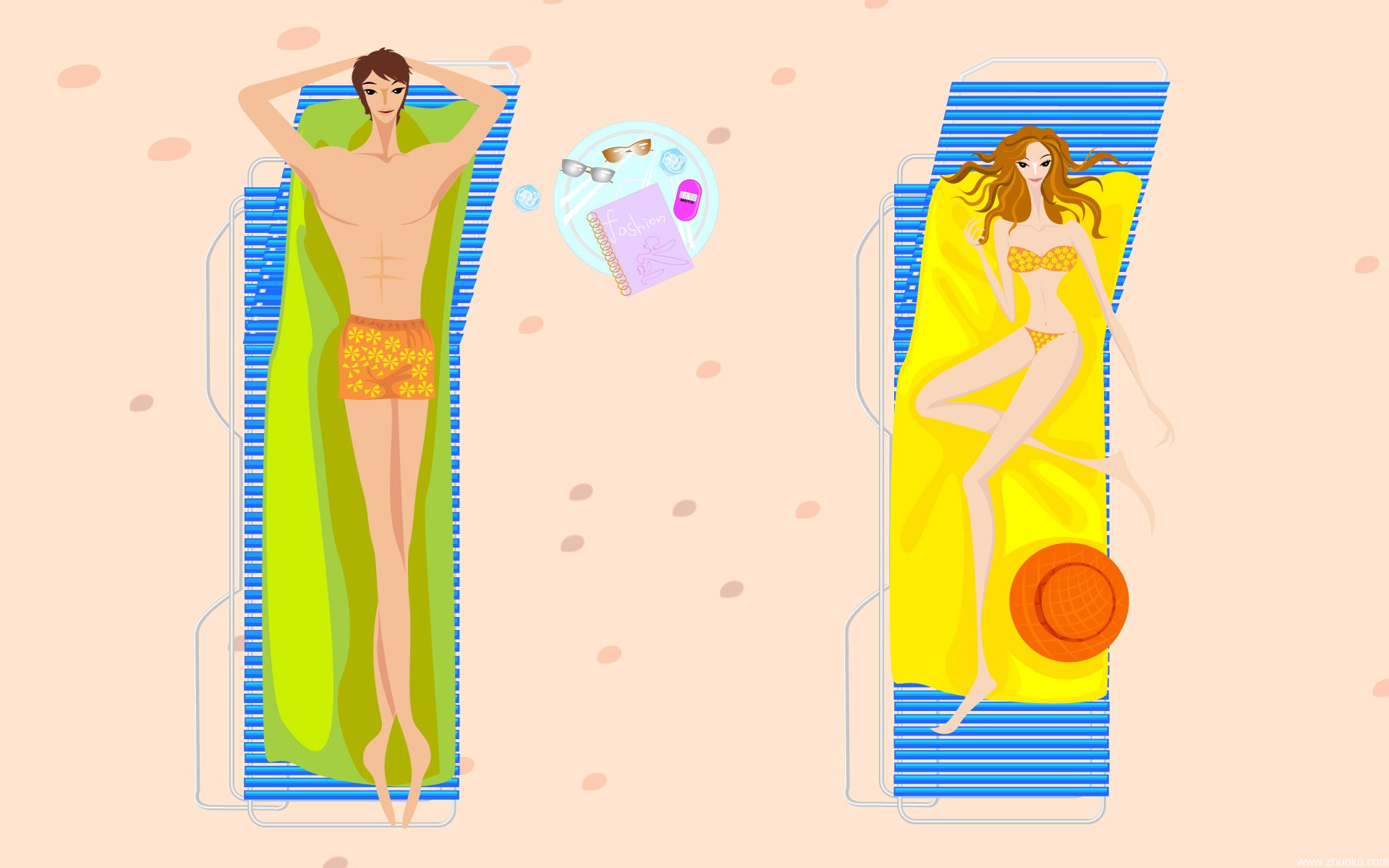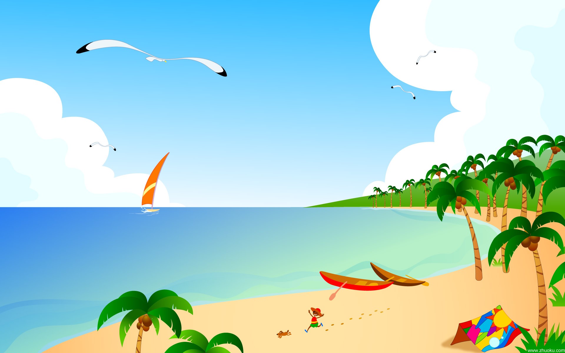 【组图】炎炎夏日,来一组清凉夏日海滩矢量宽屏壁纸 !^_^