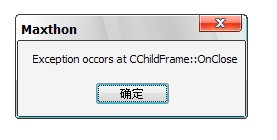 我用MAXTHON浏览器的时候,每次关闭其中一个网页时会弹出一个窗口,上面写着"Exception occors at CChildframd::onclose"请问这个是中毒的吗?还有,我一直都开不到163的blog,是不是也很这个有关?请各位好心的人帮帮忙阿!