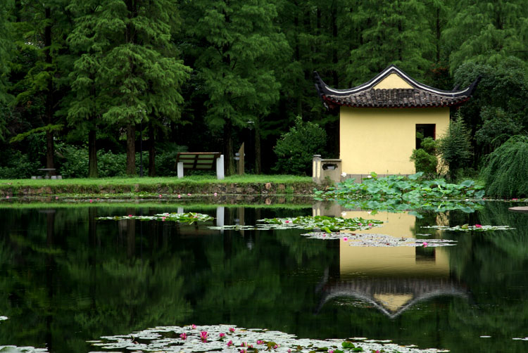 暴雨过后,园子被洗刷得一尘不染,树林青翠欲滴,池水清澈照人,亭榭好像也增添了色彩。游人稀少,显得格外静谧。这里的负离子含量可能是很高的吧!