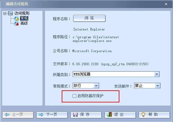 有高级功能中,有访问网络的应用程序的防篡改。。。但是在访问程序当中,却发现IE却也有单独的防篡改,选上了前面的那个,但是IE的改篡改却还默认是不防止的。。。相信其它的系统进程也是这样的,如果有木马注入IE或其它系统进程的话,那不完蛋了????