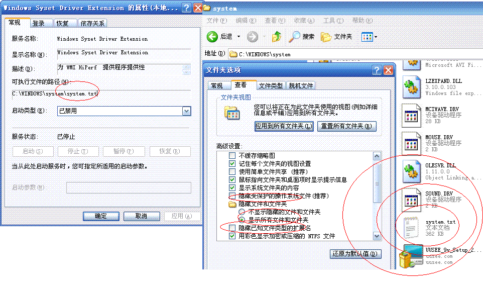 一个隐藏的system.txt文件!!!!!(后缀完全显示了 就是txt 不是exe).