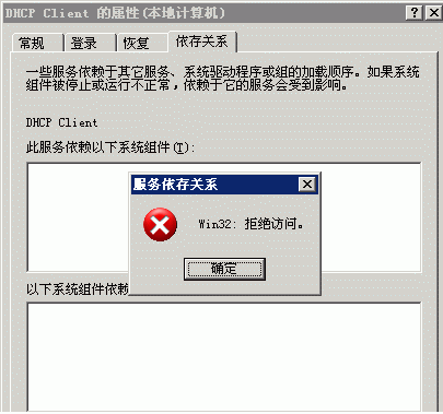 win2003 服务依存关系 拒绝访问,怎么办?【求助:未解决】