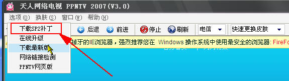 怎么会没有?打开天人网络电视画面→击菜单栏下的“选项”→下载sp2补丁,参见下图片